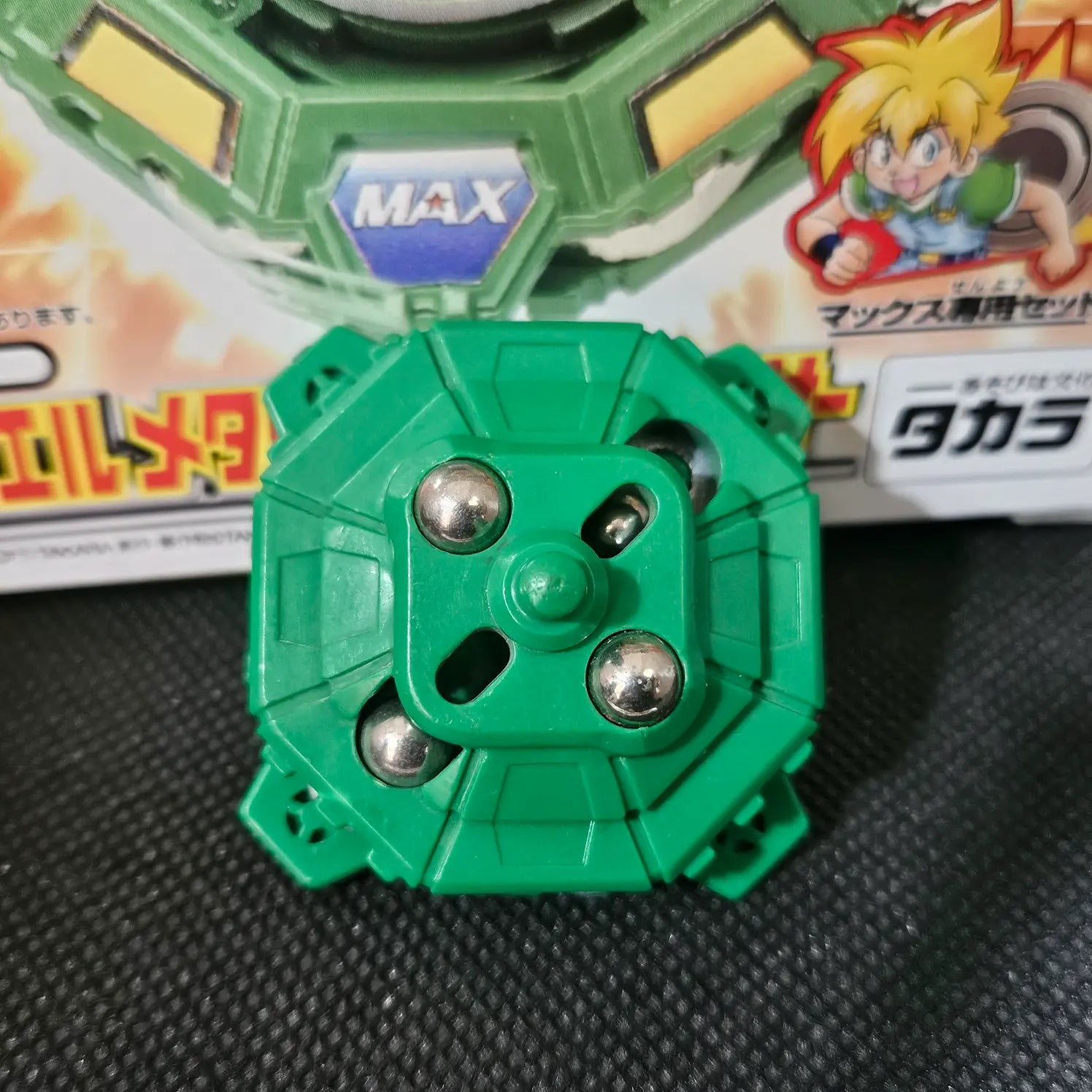 Draciel Metal Ball Defenser (Metal Ball Defensor) is a first-generation Defense-type Beyblade, recognized for its compact size, green design, and specialized "Metal Ball Base" that uses movable metal balls to enhance stability and defense. It is considered highly competitive for its era due to its weight distribution and defensive capabilities.