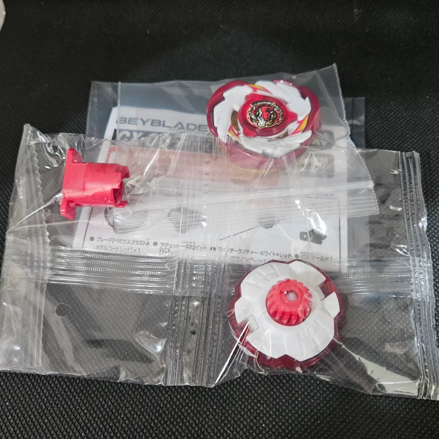 The Beyblade X Pegasus Blast ATr (Metal Coat: Red) (CX-00) is a limited edition, red-coated attack-type Beyblade released in August 2025, inspired by the red Cyber Pegasus from Metal Fight Beyblade. It features the unique Turbo (ATr) bit, a hybrid component that starts as a tall, sharp tip for stability and shifts to a flat, aggressive tip as it slows down.
