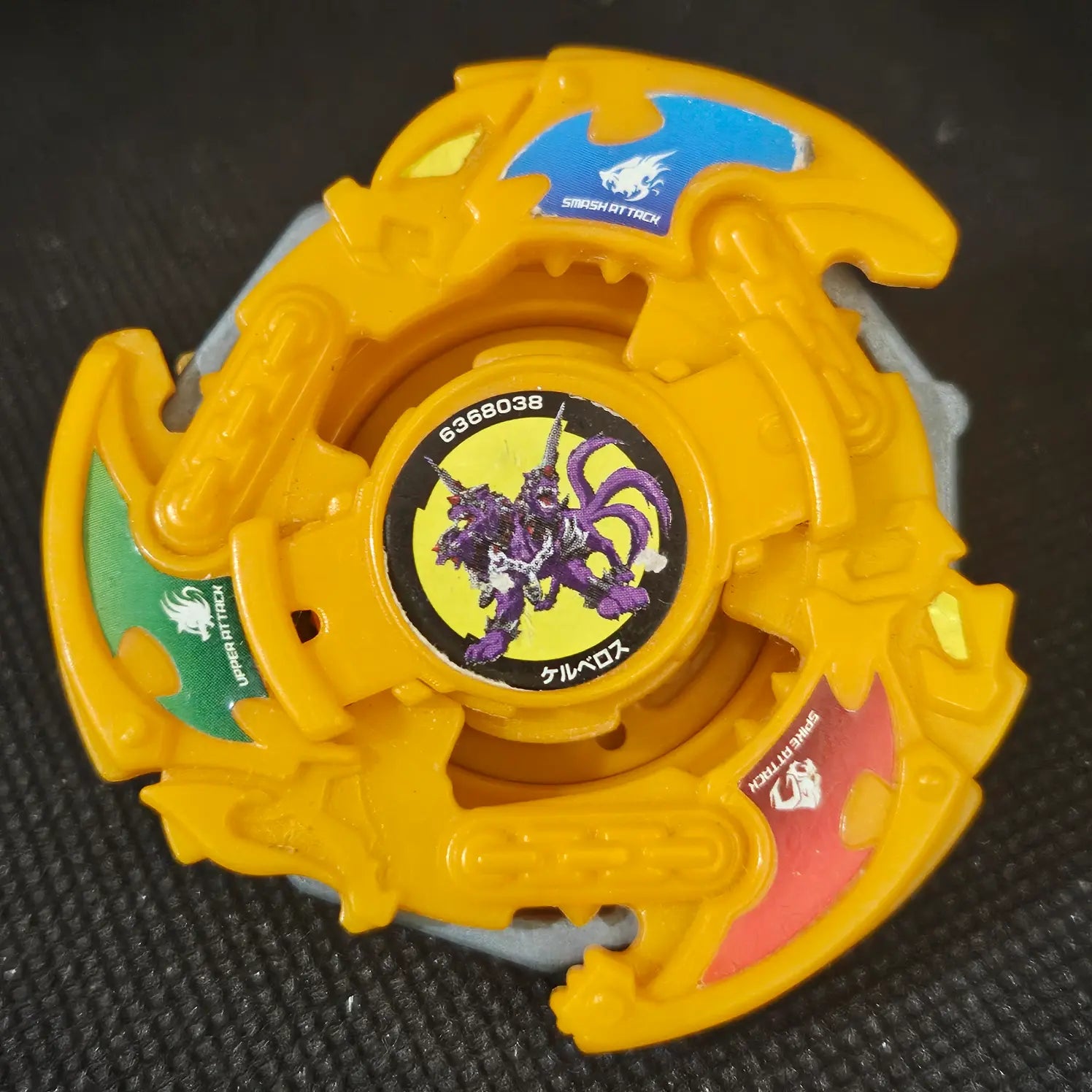 Burning Cerberous is a unique and powerful Beyblade from the plastic gen era, known for its iconic three-headed AR, which balances offensive strength with impressive stamina. This version is built to endure intense battles, combining impactful attacks with lasting spin, making it both a collectible and a functional choice in battle. As a used model, it carries signs of past battles, enhancing its history and character.