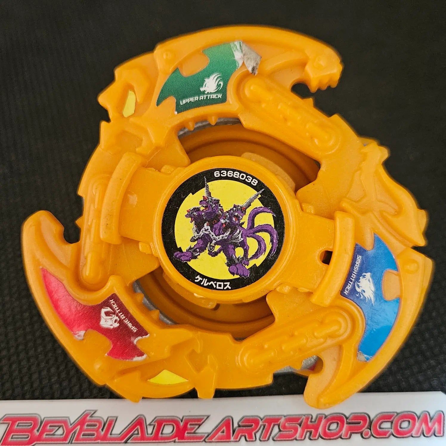 Burning Cerberous is a unique and powerful Beyblade from the plastic gen era, known for its iconic three-headed AR, which balances offensive strength with impressive stamina. This version is built to endure intense battles, combining impactful attacks with lasting spin, making it both a collectible and a functional choice in battle. As a used model, it carries signs of past battles, enhancing its history and character.