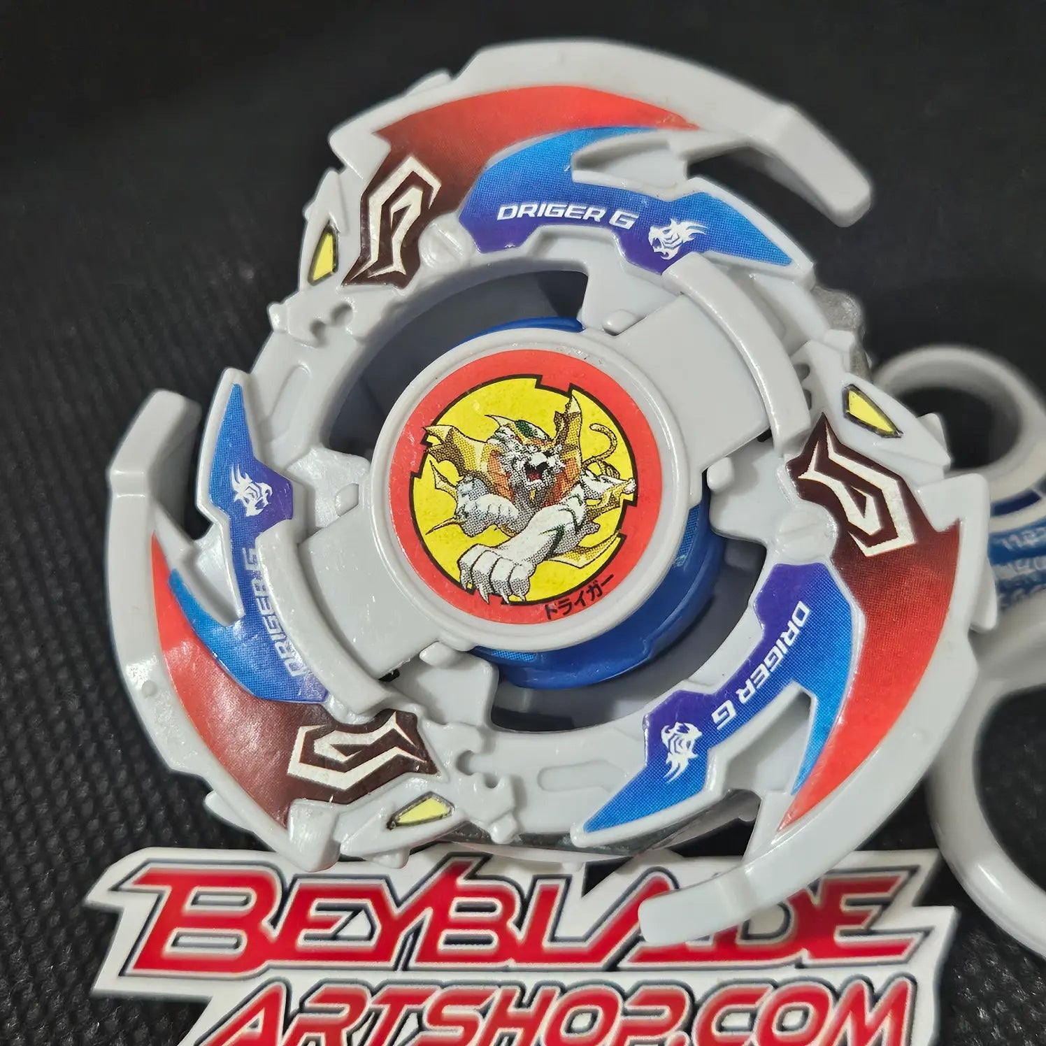 This Driger G (Gatling) Beyblade with EG key, released under the Engine Gear System, is an iconic attack type Beyblade from Takara. As the signature Bey for character Ray Kon, it has been featured in "Beyblade G Revolution" and is known for its advanced technology and powerful attacks. Perfect for fans and collectors alike.